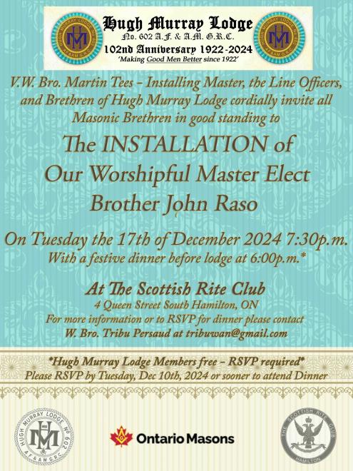V.W. Bro. Martin Tees - Installing Master, the Line Officers and Brethren of Hugh Murray Lodge